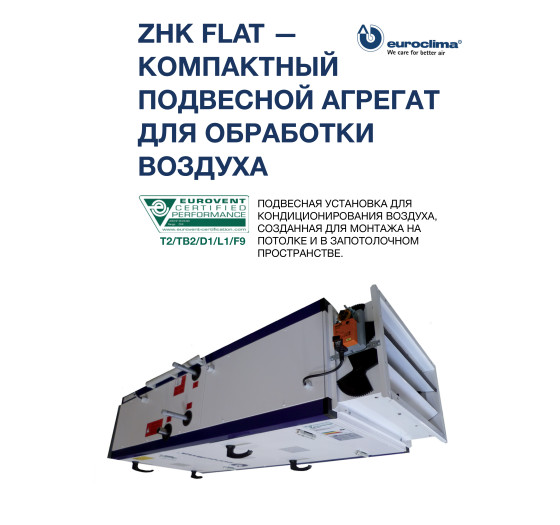 ZHK FLAT —КОМПАКТНЫЙ ПОДВЕСНОЙ АГРЕГАТ ДЛЯ ОБРАБОТКИ ВОЗДУХА, EUROCLIMA