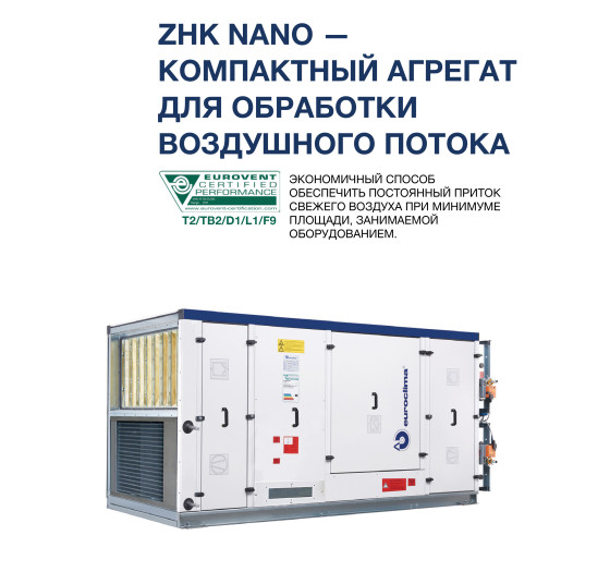 ZHK NANO —КОМПАКТНЫЙ АГРЕГАТ ДЛЯ ОБРАБОТКИ ВОЗДУШНОГО ПОТОКА, EUROCLIMA